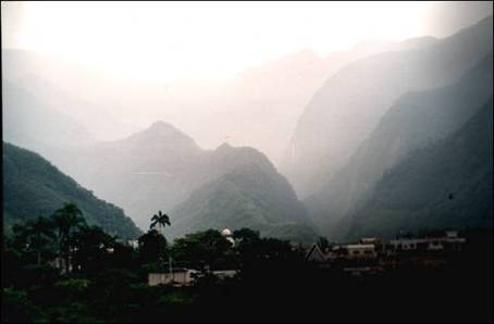 Sanzan at the Eastcoast near Hualian. In the middle of the picture: the building of the Presbyterian Church